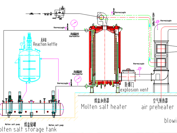 燃?xì)馊埯}爐是以天然氣為燃料,以熔鹽為熱載體,利用熔鹽泵強(qiáng)制液相循環(huán),將熱能輸送給用熱設(shè)備,繼而返回重···